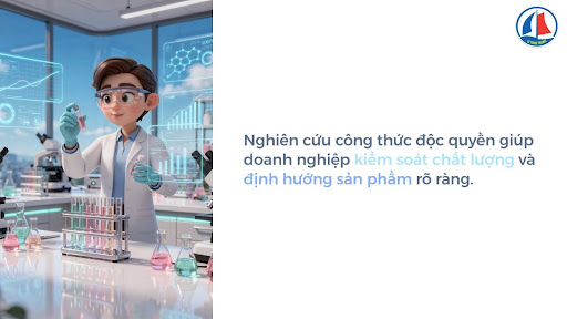 Nghiên cứu công thức độc quyền giúp doanh nghiệp kiểm soát chất lượng và định hướng sản phẩm rõ ràng.