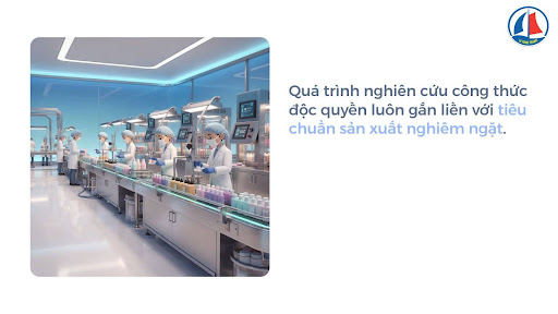 Quá trình nghiên cứu công thức độc quyền luôn gắn liền với tiêu chuẩn sản xuất nghiêm ngặt.