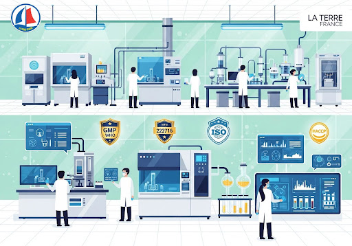 La Terre France – nhà máy chuẩn GMP hàng đầu, đối tác chiến lược giúp các thương hiệu mỹ phẩm phát triển sản phẩm độc quyền, an toàn, đạt chuẩn quốc tế và hợp pháp theo Bộ Y tế.
